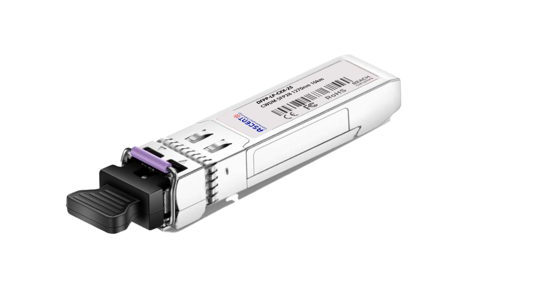 ASCENT’s SFP28 25Gbps CWDM DML Transceiver is a high-performance optical module designed for 10km reach applications supporting data rates from 24.33Gb/s to 25.78Gb/s. Operating over CWDM wavelengths from C27 to C37 on single-mode fiber, it meets the needs of next-generation data center interconnects, 5G fronthaul, and high-speed enterprise networking environments. This compact hot-pluggable SFP28 module is built to comply with industry standards including SFP28 MSA, SFF-8431, and SFF-8432, and is available in both commercial and extended temperature ranges to meet diverse environmental demands. With a low-power 3.3V DC power supply, it helps reduce overall power consumption in dense network infrastructures. The optical assembly features a C27 to C37 DML laser transmitter and a PIN photodiode receiver integrated with a TIA, ensuring low jitter and exceptional bit error rate performance. Engineered for cost-effectiveness, energy efficiency, and long-term reliability, this transceiver is ideal for customers seeking to maximize performance while minimizing operational costs.