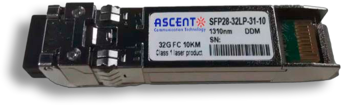 Ascent’s SFP28 32 Gb/s transceiver is an integrated fiber optic transceiver that provides a high-speed serial link at signaling rates up to 28.05 Gb/s. It is a single-channel, pluggable, fiber-optic module for short and medium-range data communication and interconnect Ethernet applications. This module is designed to operate over single- mode fiber systems using a nominal wavelength of 1310 nm. It has a transmission distance of up to 10 km over SMF. The optical interface uses duplex LC receptacle. The SFP28-32LP-31-10 module complies with SFF-8431 and SFF 8472 standards. It features a metal enclosure for lower EMI and utilizes a 2- wire interface that is compliant with the serial communication protocol as defined in the SFP+ MSA. It also provides a unique integrated digital diagnostic monitoring interface, allowing for real-time access to device operating parameters. This module is hot-pluggable.